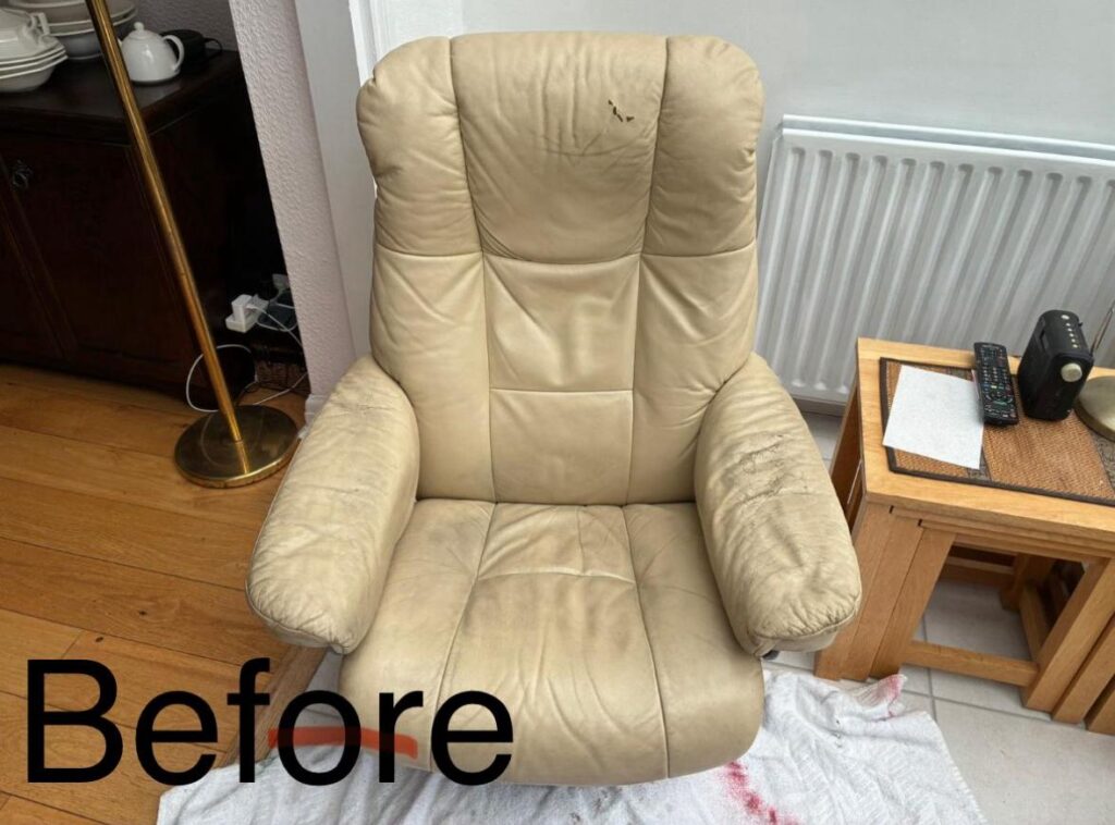 Now that the London stressless chair restoration is completed the chair needs to be left for a couple of hours in order to dry. Then it is touch dry should the customer wish to touch it. Although this is not recommended. The area should be left for 48 hours as a minimum until it is used but this depends on how much colour is applied.